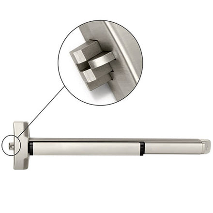 The rim SquareBolt® exit device’s unique construction offers innovative protection. Its design provides greater latch engagement for higher security than standard rim devices can offer. Credit cards, crowbars, door rattling and shaking are resisted, significantly reducing the threat of unauthorized entry.