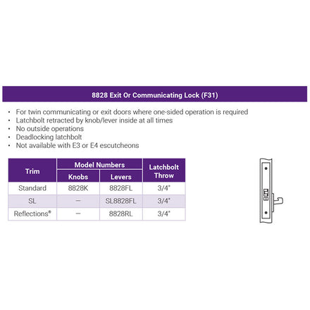 Accentra (formerly Yale) AUR8828FL ANSI/BHMA Grade 1 Certified Mortise Lock, Exit or Communicating Function, Sectional Augusta AUR Lever/Rose Trim