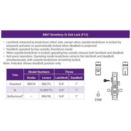 - Anti-panic operation. Operating inside knob/lever retracts the latchbolt and deadbolt simultaneously, with outside knob/lever remaining locked.