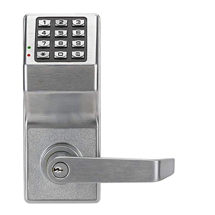 Alarm Lock DL2700 Pushbutton Cylindrical Door Lock, 100 Users, Straight Lever, Weatherproof