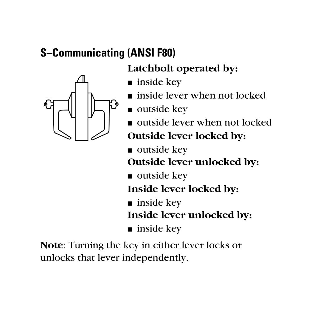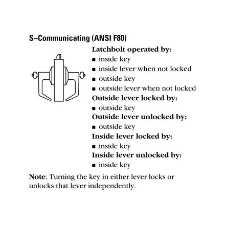 Best 9K37S-15-D-S3 Grade 1 Communicating Cylindrical Lock, 15 Lever, D Rose, (SFIC) Small Format Interchangeable Core Prep, Less Cores, S3 4-7/8" ANSI Strike