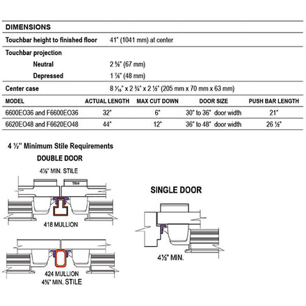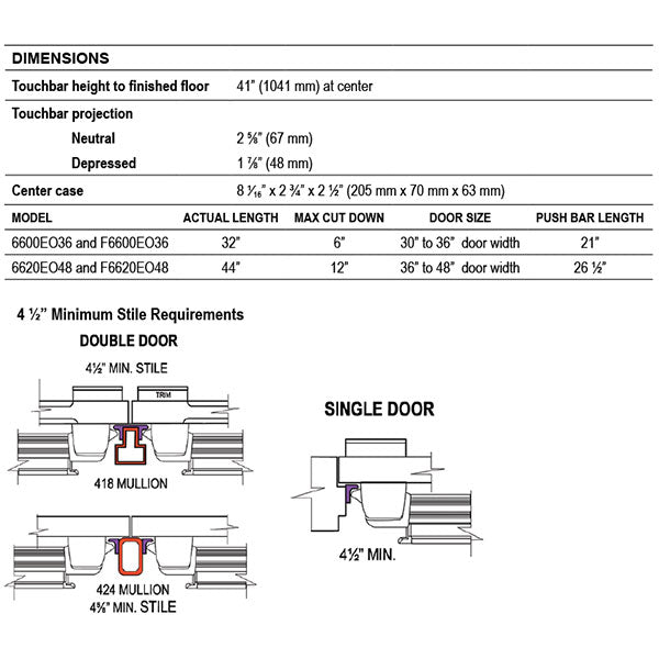 Models: 6600EO-36-ALUM, 6620EO-48-ALUM, F6600EO-36-ALUM, F6620EO-48-ALUM, 6600EO-36-US32D, 6620EO-48-US32D, F6600EO-36-US32D, F6620EO-48-US32D, 6600EO-36-DURO, 6620EO-48-DURO, F6600EO-36-DURO, F6620EO-48-DURO