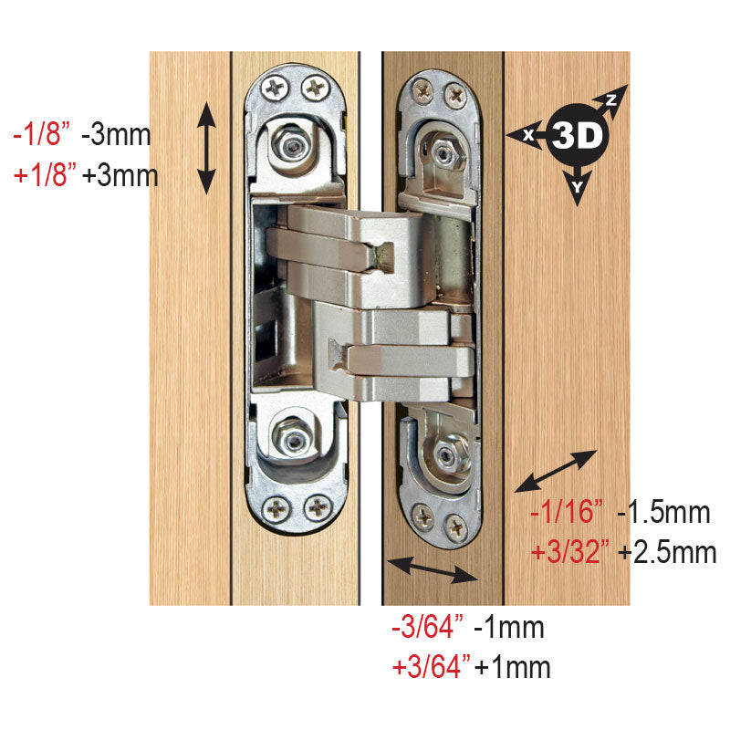 3D Adjustable Concealed Hinge for use with Wood and Hollow Metal Doors