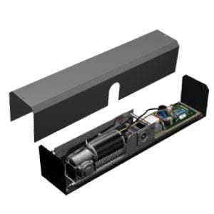 - Non-handed motor gearbox uses mechanical controls to act as a size 3 door closer in manual operation