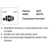 Falcon D211CP6 Grade-2 Classroom Deadbolt Lock, Schlage C Keyway