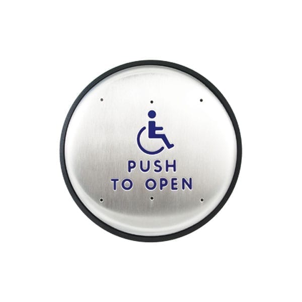 Door Switch - 6" round, Stainless/blue letters, ADA symbol, RF