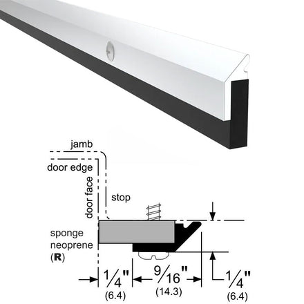 Designed to be applied to the “stop” perimeter of the door frame. Includes an EPDM seal with aluminum framing. The seal compresses against the door, to create a tight weatherproof seal.
