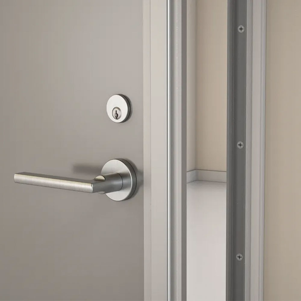 - Full-height interlocking feature secures door-jamb gap, preventing prying and forced entry