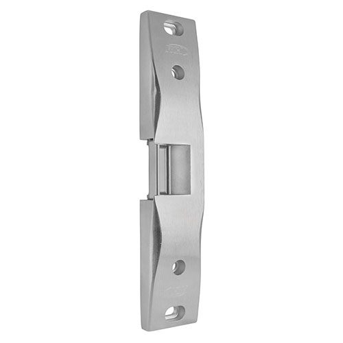 The 0162 electric strike accommodates ½” to ¾” latch projection and is designed for use with Pullman latch rim exit devices. As a completely surface mounted strike the RCI 0162 requires no cutting of the door frame. The rugged stainless-steel strike accommodates hollow metal, aluminum and wood door frames. Its heavy-duty housing is reinforced to eliminate twisting in the case of imperfect frames. The one-piece conventional keeper promotes even load distribution for increased security in the event of an attempted forced entry.