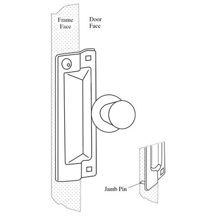 • Features: Jamb pin prevents prying of door. Non-handed. Notched for 2-1/4"-3-1/4" diameter rose on cylindrical lockset.
