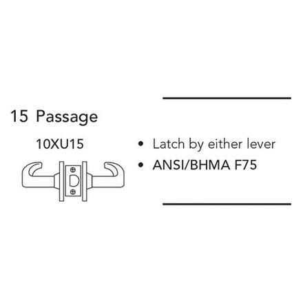Sargent 10XU15 Grade-1 Cylindrical Lock, Passage Function, L Lever, L Rose