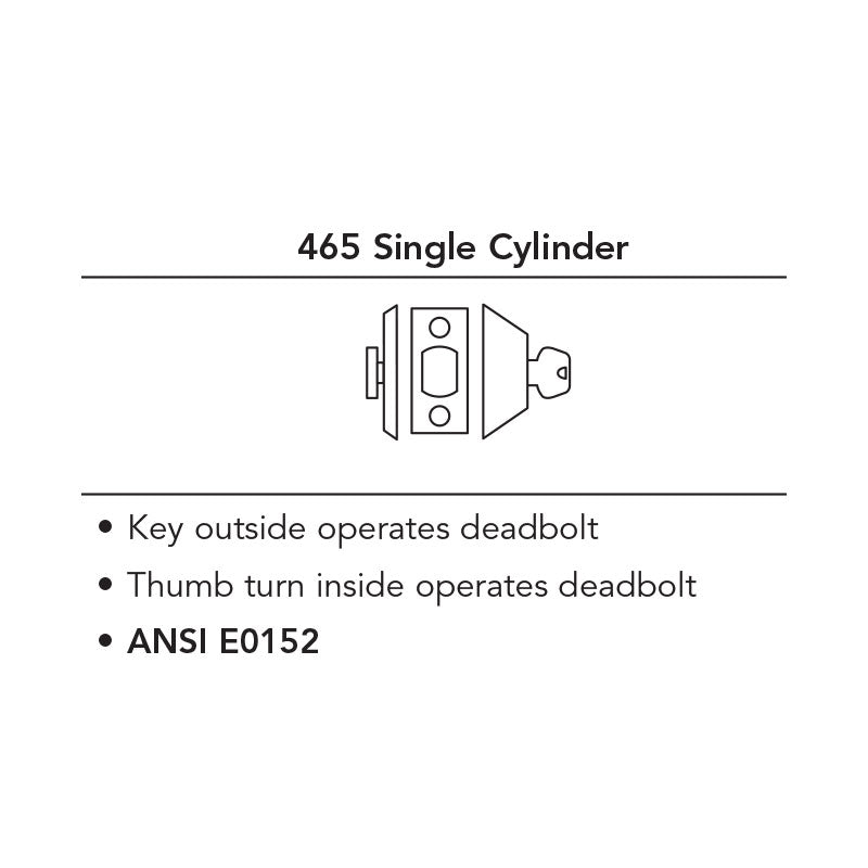 Sargent 465 Single Cylinder Deadbolt, Grade-2, 2-3/4" Backset