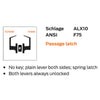 ANSI Function F75 – No key; plain lever on both sides; spring latch. Both levers always unlocked.