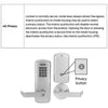Privacy Function (40): Lockset is normally secure. Inside lever always allows free egress. Interior pushbutton on inside housing may be used to select a privacy status. The interior pushbutton will disable normal electronic access from the exterior. Opening the door or pressing the interior pushbutton a second time on the inside housing deactivates the privacy status. Has interior pushbutton (IPB).