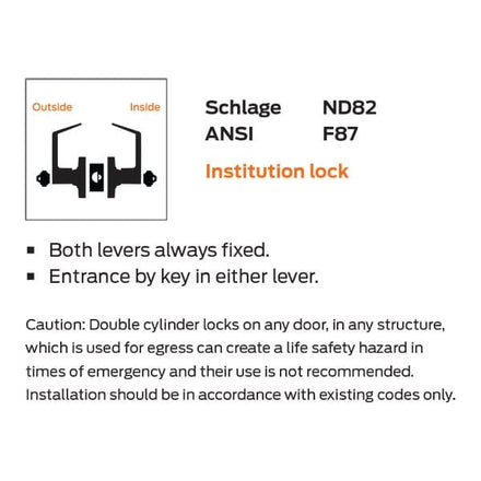 Schlage ND82PD RHO Grade 1 Institutional Lock, Rhodes Lever, Standard Cylinder