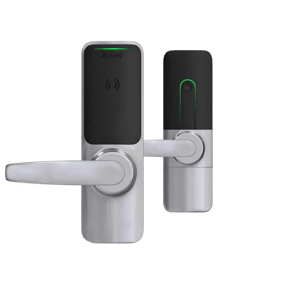 - Credential support includes Schlage MIFARE®, Bluetooth® and NFC mobile1