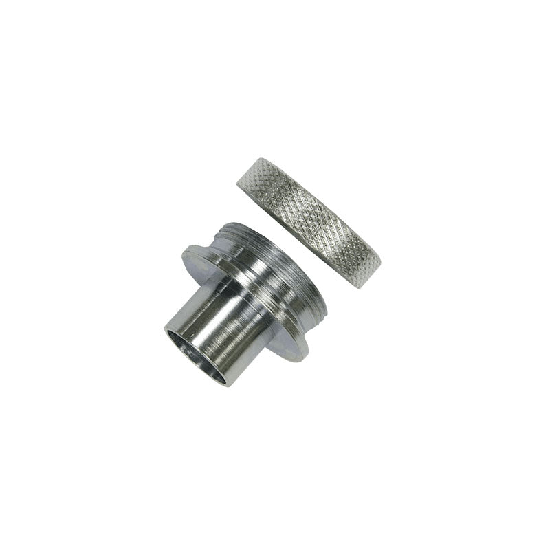 Guide bushing and locknut for use with SOSS® Invisible Hinge Router Guide. Guide bushing I.D. 21/32″; O.D. 3/4″; Distance past base 9/16″; locknut fits bushing. Fits most routers.