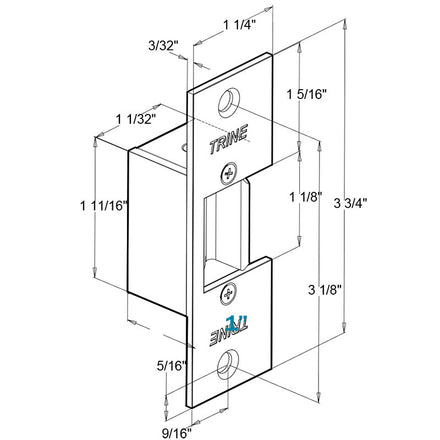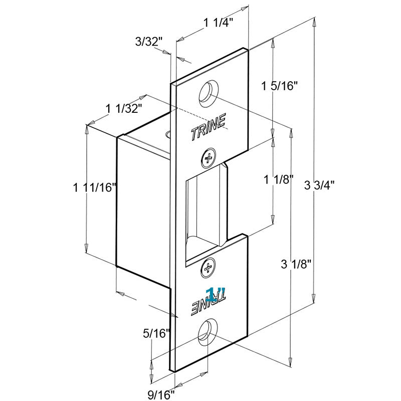 Trine 334 - 3000 Series Electric Strike Faceplate, 3-3/4" x 1-1/4"