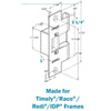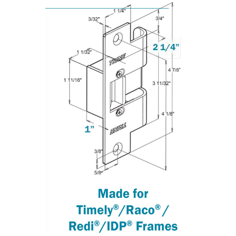 Frame features an extended ramp to accomodate additional face of Timely frames (or similar). Ramp has a 3/8”.extension. For new or replacement installations. Use with cylindrical locksets and deadlatches having up to 5/8” throw, based on 1/8” door gap. Provides a finished look for wood frames with trim.
