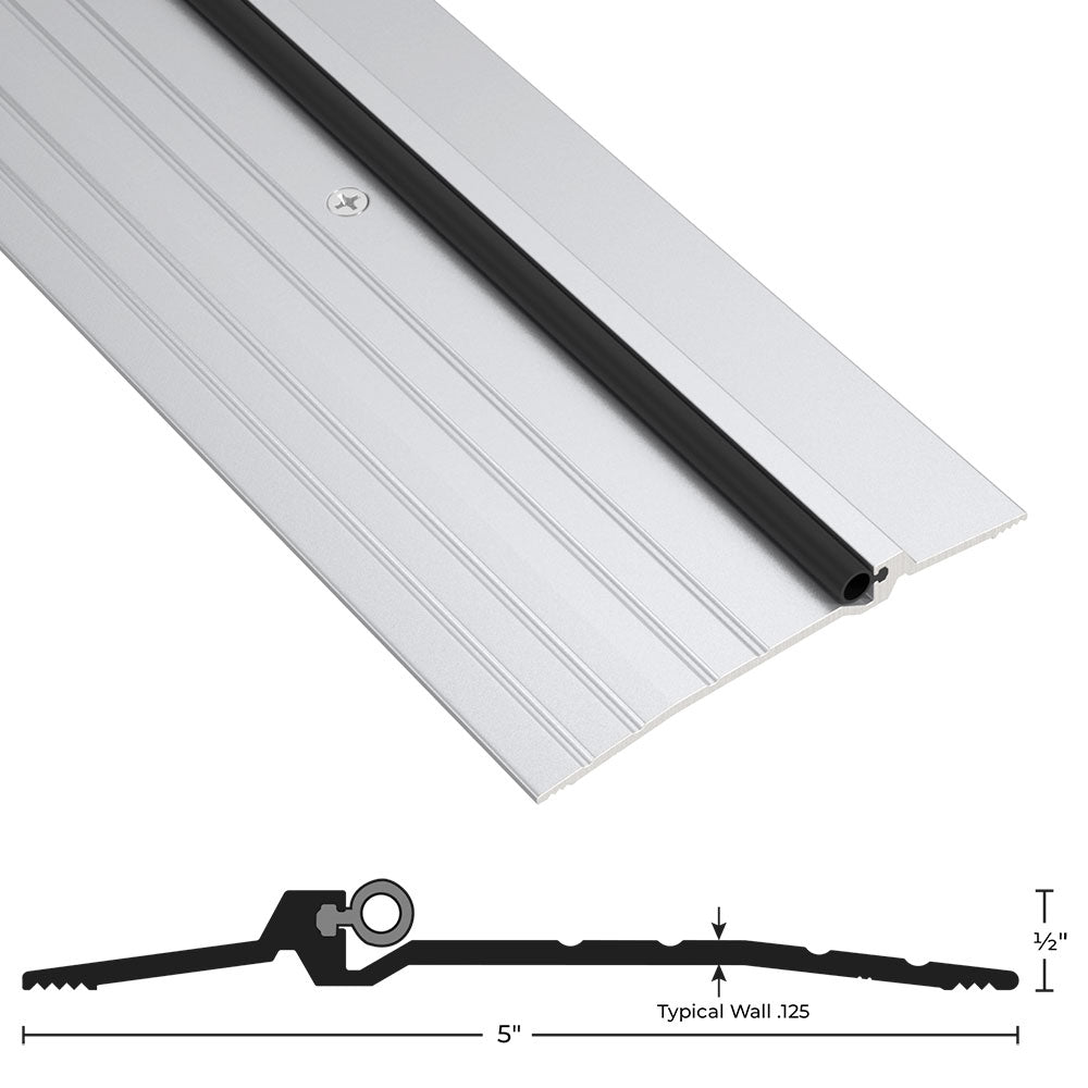 Trudoor TD-BTH5A ADA Compliant Commercial Bumper Seal Threshold, 5″ W x 1/2″H, Mill Finish Aluminum, Vinyl Seal