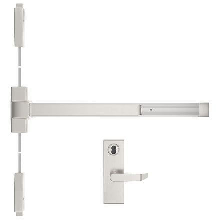 Trudoor TDE-1000V-L-SFIC Heavy-Duty Grade-1 Surface Vertical Rod Exit Device with Escutcheon Lever Trim Prepped for (SFIC) Small Format Interchangeable Core, Less Core, Satin Stainless Steel