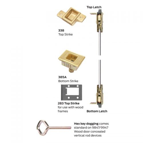 Von Duprin 9947WDCEO/9947WDCEO-F Grade 1 Concealed Vertical Rod Exit Bar for Wood Doors, Exit Only