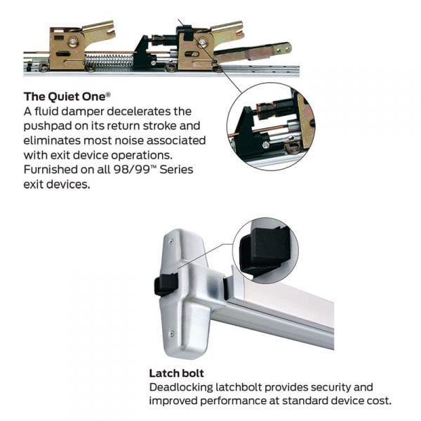 Often regarded as one of the world’s finest panic bar exit device, the 99 Series has been certified to the highest industry standards and are used in schools, hospitals, and government buildings. The 99 Series is a high-performance heavy-duty push pad exit device.