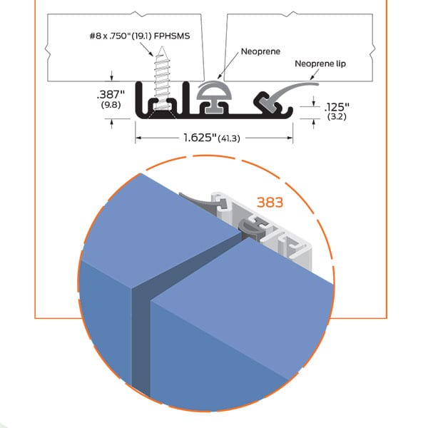 #383 provides three sets of seals to block sound: the neoprene bulb with extra “lip” of neoprene in the primary seal at the meeting edge, plus another neoprene “finger” for added sound cushioning against the active door.